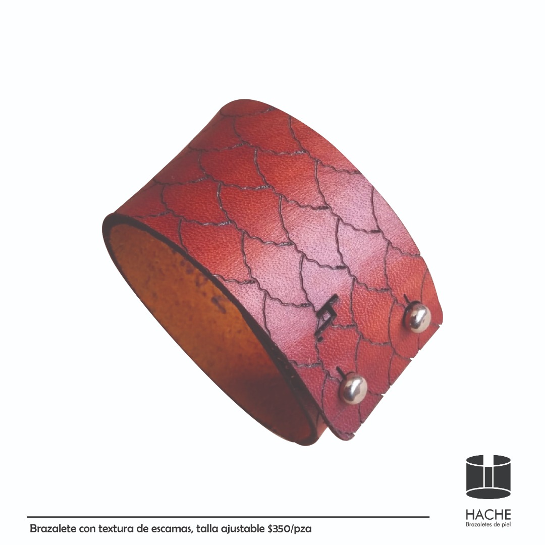 Brazalete con textura de escamas, talla ajustable $350/pza