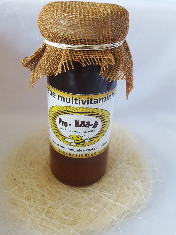 Multivitamínico hecho con miel pura de abeja Melipona además contiene polen, jalea y propóleos.