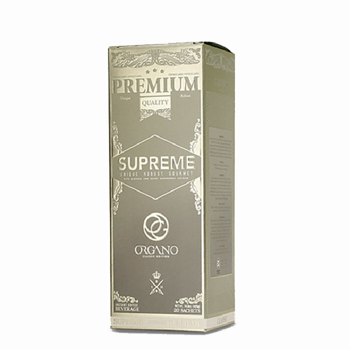 El Café Supreme Gourmet Organo? combina el ginseng? uno de los productos herbales más populares del mundo en una taza cremosa y sabrosa especialidad de café endulzado para darle un toque de energÃa adicional a su dÃa. Piense en esto como una bebida de café saludable que hace que su dÃa sea Supremo.