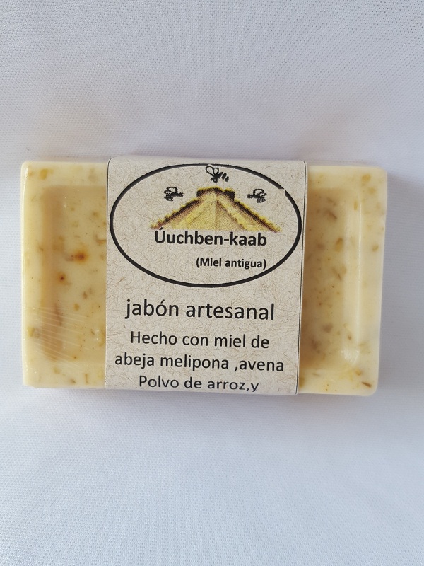 Jabón artesanal elaborado con miel de abeja Melipona, cúrcuma, polvo de arroz y avena